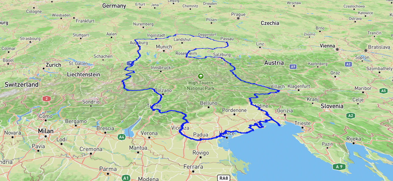 An unforgettable journey from the Bavarian capital across the Alps all the way to the Venetian lagoon.